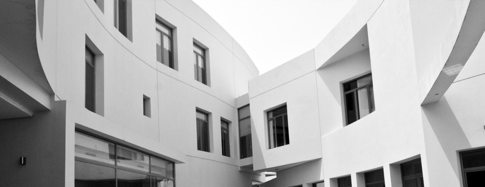 Direct entrance from street to courtyard provides an unusual spatial experience of decompression, a technique that is often lost in current architecture. In this space, curving walls emphasize the softness and femininity of the plan. These peel away from the building mass to connect the different functions, or they erode to allow new spaces to form. In function, there are two building blocks containing housing for the parents and the daughters, respectively, with a bridge connecting them and also allowing access to a rooftop garden. At ground level, a colonnade encloses a reception hall for guests, beneath the husband and wifes quarters, which are completely segregated. Other functions include a spa and a home theater. At the center, a pool enhances the sense of an oasis, especially since plantings and greenery have grown in.